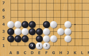 but the move ends in gote when white defends the E1 stone
