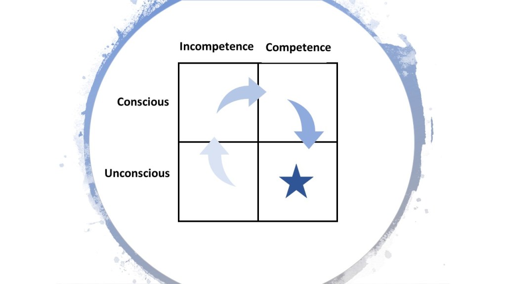 Once we become aware of the activity, we move up to the Conscious/Incompetence box, where we know that we do not possess a particular skill and are keen to learn, but we are not currently very good at it.