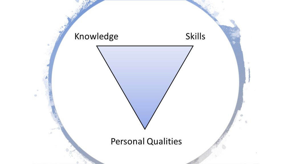 Knowledge refers to the things that we know. Information that we have learned from any source such as reading books, listening to lectures, watching videos and so on. Skills refers to the application of this knowledge, combined with repetition and practice, that lead to an improvement in performance. Personal Qualities refers to YOU and what motivates you, what inspires you, what annoys or irritates you, how you get your energy and how you deal with blocks and obstacles.